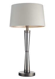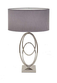 Chrome chain table lamp with Grey Faux Silk shadeHeight of Lamp: 55 cmsDiameter of Shade: 30 cms